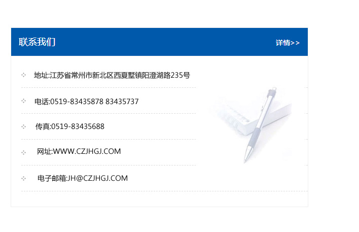 地址:常州市新北區友邦商務大廈1幢16、17層  電話:0519-85101652  傳真:0519-85112595  郵編:213022  網址:www_cz-jiayue_cn.hungchin.com  郵箱:xiajifengaa@163.com